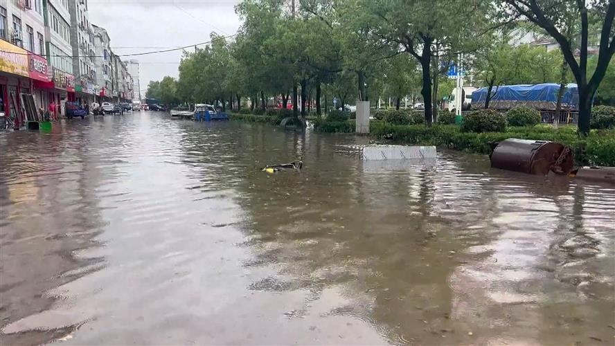 2023年6月21日,江西吉安,因暴雨影响,街头积水严重。视觉中国 视频截图