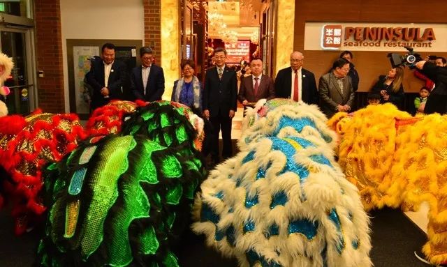 半岛加拿大控股集团董事长王文康、执行董事王滨率众欢迎嘉宾到来:中国驻温哥华副总领事王承军、国会议员黄陈小萍、BC省科技就业暨贸易厅长赖赐淳(Bruce Ralston)、BC贸易省务厅长周炯华、温哥华市议员Sarah Yung、本那比市议员王白进、列治文市议员区泽光、香港驻加西首席专员袁黄洁玲、中领馆侨务领事施陈勇、渥烈治商场管理公司总裁Susan Nicol、协平世博总裁居德伟和社区领袖姚崇英、郑炯光、郭英华、杨子亮、陈永涛、余宏荣、朱展伦、马威廉、牛华、蔡宏安、黄国裕、邝杰雄、庄永编等。