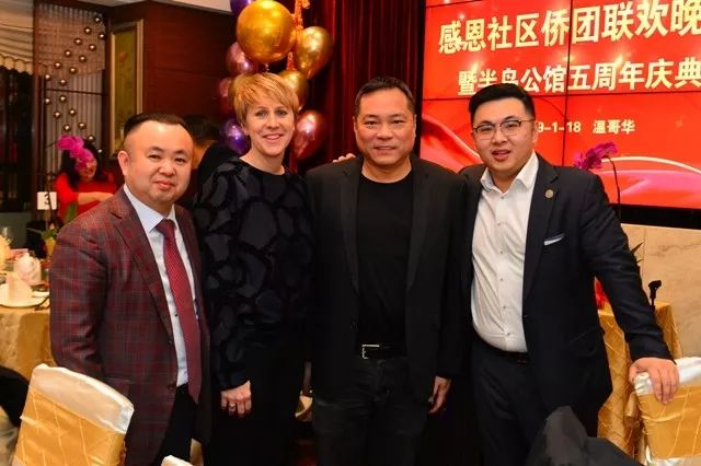 BC省科技就业暨贸易厅长赖赐淳代表省长祝贺半岛公馆酒家开业五周年,他说,新移民来到加拿大BC省创业活跃了本省经济,为本地提供了就业机会,他希望半岛集团在新的一年有更大的发展。