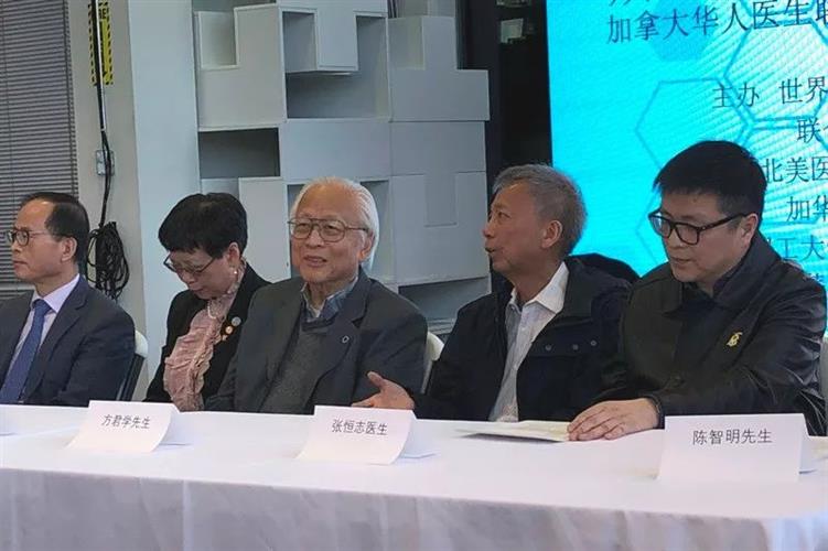 加拿大抗击新型冠状病毒疫情应急委员会执行主任张恒志医生向与会者介绍应急委员会以及世界华人医师协会的运作机制;