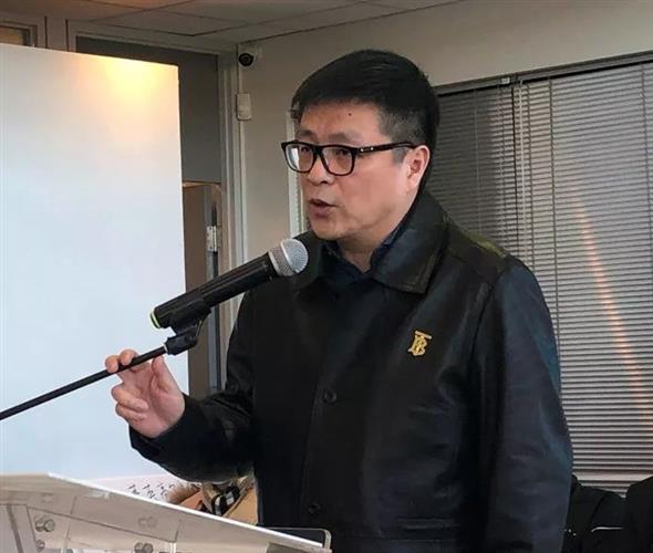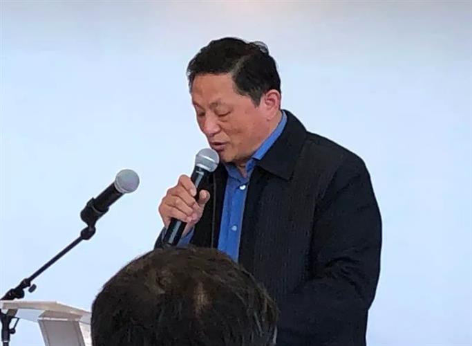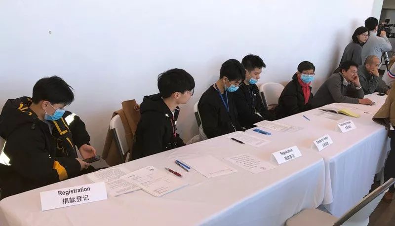 加拿大抗击新型冠状病毒疫情应急委员会秘书长陈智明先生向与会者介绍应急委员会的筹备以及现场捐款的情况。