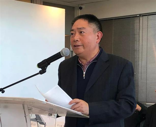 加拿大抗击新型冠状病毒疫情应急委员会副主任蒋曹阳医生致辞;