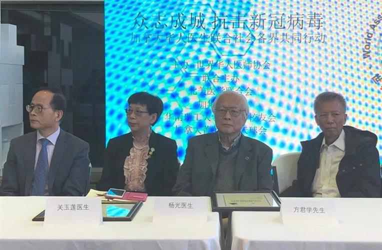世界华人医师协会加拿大办事处主任、加拿大抗击新型冠状病毒疫情应急委员会主任杨光医生首先致辞;