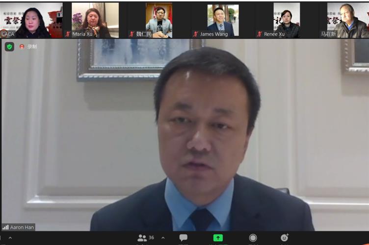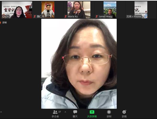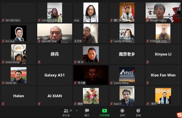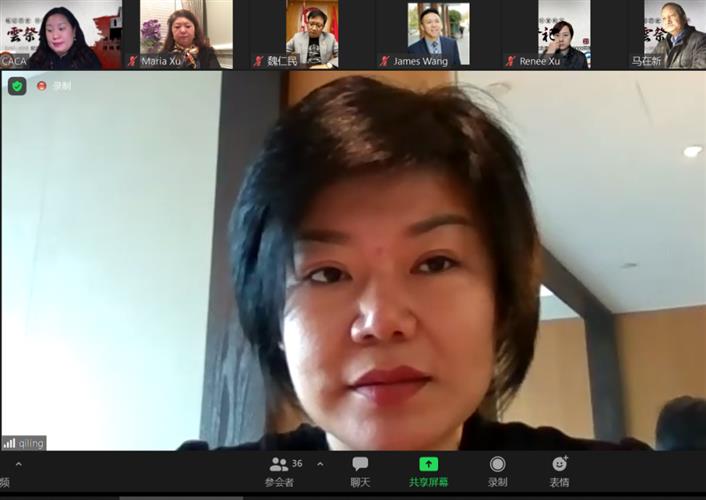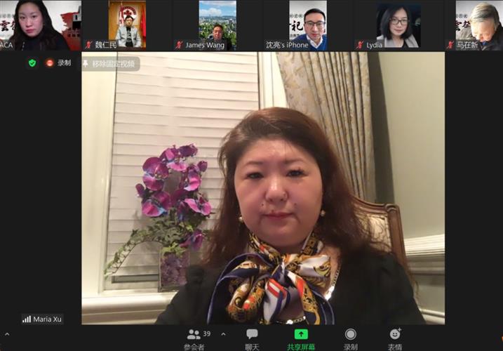 江苏华人联合总会常务副会长沈亮在南京通过视频发言。