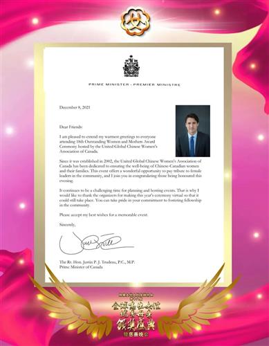 今年加拿大华人妇女联合会的颁奖活动和往年一样得到加拿大三级政府、中国驻温哥华总领事馆、江苏省侨办、江苏省侨联、南京市侨办、南京市侨联的支持并发来贺信,也得到加拿大华人社团联席会和世界多地社团的大力支持。