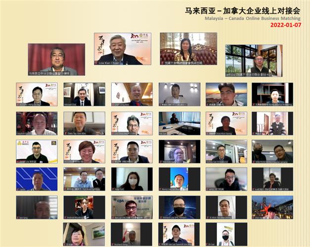(本网讯)2022年1月7日,加拿大中华总商会和马来西亚中华总商会共同举办了以聚焦行业:服务、贸易、制造为主题的“2022加拿大-马来西亚企业线上对接会”。加马企业线上对接会共有136个企业、150多人参加会议,加拿大中华总商会有63个企业参加会议,其中有(20多个企业是加拿大中华总商会在中国的会员企业)参加了会议。