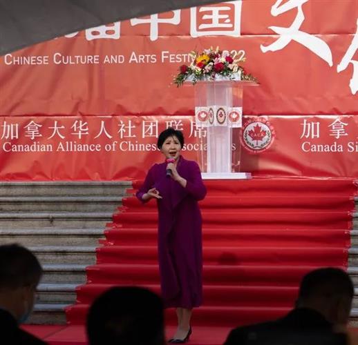 列治文市议员卢仙咏(Alexa Loo)在讲话中,感谢主办方提供了丰富多彩的中华文化让大温地区民众来欣赏,她祝贺第四届中国文化艺术节成功举办。