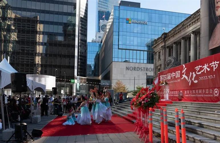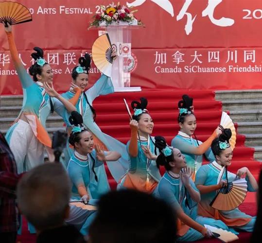 (本报讯)金风送爽,艳阳普照。加拿大华人社团联席会和加拿大四川同乡总会共同主办的第四届中国文化艺术节10月1日下午在温哥华美术馆北广场隆重举行,现场20顶帐篷,蔚为壮观,彩旗飞舞,乐声悠扬,美食飘香,字画夺目。开幕式前,太极拳扇,少林功夫,金龙起舞,雄狮腾跃,中华传统文化在温哥华市中心烘托出一派文化盛景。