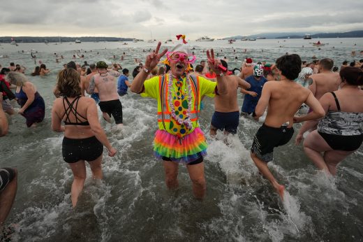 因为新冠状病毒疫情中断两年的元旦冬泳活动 – 「北极熊冬泳」(Polar Bear Swim)再度回归了。1 月 1 日星期日,在BC省温哥华举行的冬泳活动又重新在英吉利湾登场,这是 2020 年以来的首次活动,参与的泳者都感到非常兴奋。温哥华市称,首届元旦冬泳比赛是在 1920 年举行,当时大约有 10 名游泳运动员参加。此后规模一年比一年大,超过 7,000 人参加了 2020 年的游泳比赛,当年正好是该赛事成立 100 周年。疫情期间不能在英吉利湾实际游泳,因此很多人只能透过虚拟网络表达对冬泳的坚持,参与者将自己浸入装满冷水(至少 7 摄氏度)的浴缸或游泳池中,并在线分享照片或视频。