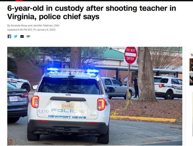 据弗吉尼亚州纽波特纽斯(Newport News)警察局长史蒂夫·德鲁(Steve Drew)称,周五下午,一名6岁的男孩在当地的里奇内克小学(Richneck Elementary School)向一名教师开枪致其重伤,目前他已被警方拘留。德鲁说:“这个人是一名6岁的学生,他已被警方拘留。我们一直在与我们的联邦检察官和其他一些机构联系,以帮助我们最好地为这个年轻人提供服务。”据CNN报道,在周五晚间的新闻发布会上,德鲁说一名30多岁的女老师在教室内被枪杀。他补充说:“这不是一起意外的枪击事件”。