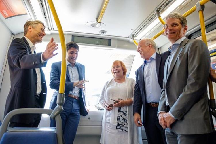 總理杜魯多、省長賀謹、溫哥華市長羅品信、素里市長赫普納等人,周三帶著媒體,特地從溫哥華搭乘天車到素里,宣佈「交通建設撥款計畫」。