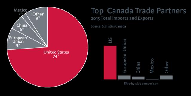 在经济上来说,加拿大对美国的依赖,比对中国要大得多。