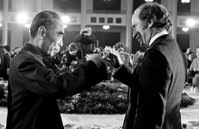 图:1973年10月11日老杜鲁多与周恩来总理在北京会面