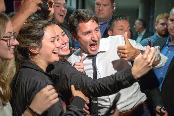 2019年的国会竞选中,小杜鲁多领导的自由党以157座成为国会的少数党派,投票率至加拿大有史最低。(注16)