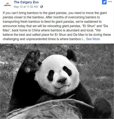 图:卡尔加里动物园宣布送二顺和大毛回国