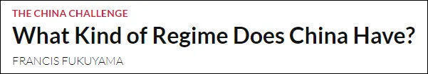 “中国是哪种政权?” 福山文章截图《历史的终结》是福山的成名作。作为日裔美国政治学家,他开篇就将中国放在了对立面,声称“为了知道美国和其他西方国家未来几年应该如何应对中国,我们需要了解它是个什么样的社会,这就需要同时研究中国历史及其近期的行为。”
