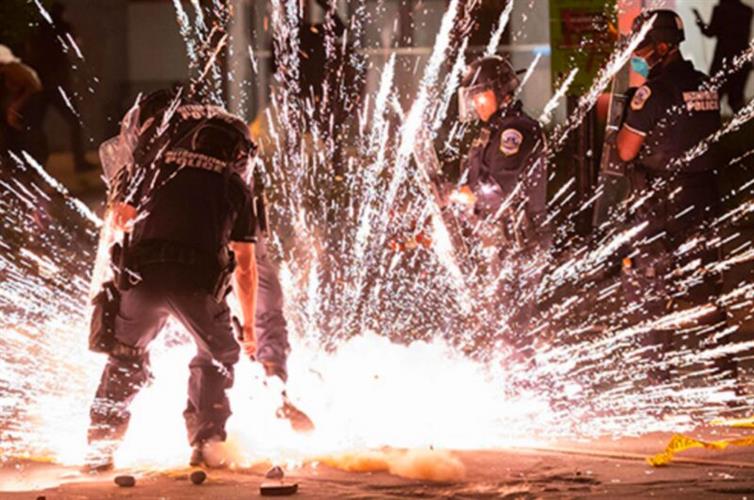 2020年5月30日,美国华盛顿特区,抗议者投掷爆炸物。