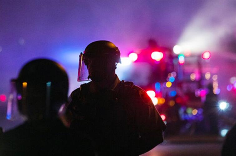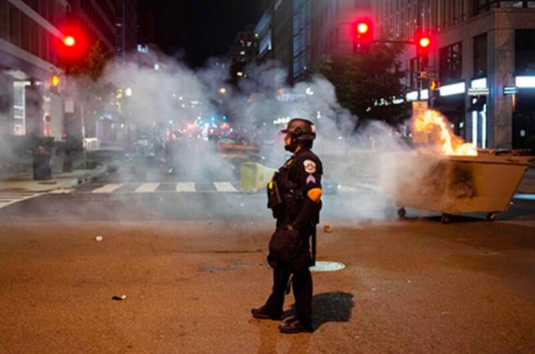 2020年5月30日,美国华盛顿,骚乱现场的一名警察。