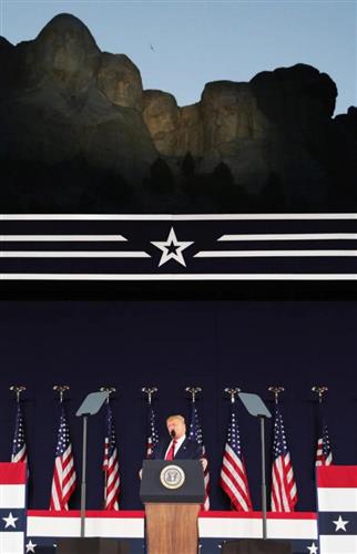 ▲ 7月3日,美国总统特朗普在南达科他州的拉什莫尔峰国家纪念碑前参加独立日庆祝仪式。新华社/路透