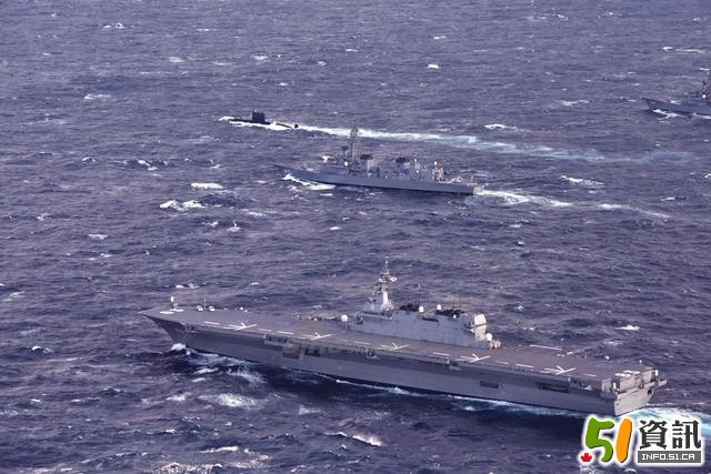 据日本海上自卫队发布的消息称,12月19日,日本海上自卫队与加拿大皇家海军在西太平洋海域进行了联合训练。海上自卫队派出4艘护卫舰和1架P-1反潜机参加,加拿大皇家海军则派出了1艘潜艇参加。 据悉,日本海上自卫队派出的四艘护卫舰分别为出云级直升机护卫舰“出云”号(DDH-183)、旗风级导弹护卫舰“旗风”号(DDG-171)、村雨级护卫舰“村雨”号(DD-101)和“雷”号(DD-107)。加拿大皇家家海军派出的则为维多利亚级常规动力潜艇“希库蒂米”号(SSK-879)。 此次演习演练的主要科目是海上反潜作战,在演习中,日本海上自卫队作为搜潜方出动了包括“出云号”直升机驱逐舰和P-1海上巡逻机在内的舰机对加拿大“希库蒂米”号潜艇展开搜索。日本海上自卫队表示,通过此次演习,将提升海上自卫队的战术技术水平,并促进海上自卫队和加拿大皇家海军的友好交流,强化两军关系。