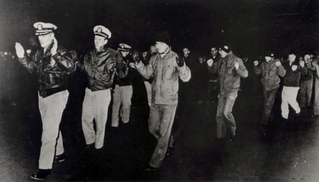 美舰普韦布洛号1968年1月23日遭北韩没收时,舰上美军官员都成俘虏。美联社