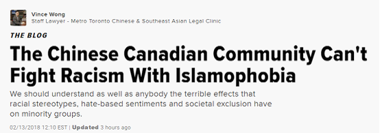 然而,这几次示威活动并没有得到英文媒体的任何回应,只有Huffington Post在今天登出一篇评论文章,作者是多伦多华人及东南亚法律援助中心(Metro Toronto Chinese & Southeast Asian Legal Clinic)的律师Vince Wong,他认为,华人社区的一系列抗议活动属于典型的“伊斯兰恐惧症”。