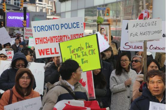 自从穆斯林头巾女孩事件发生以来,多伦多华人社区组织了数次游行抗议活动。2月18日,更有各大城市华人聚集在国会山,要求总理小杜鲁多向亚裔和全体加拿大人道歉,掀起抗议新高潮。