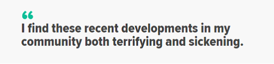 他说:“的确,剪头巾事件并没有发生,但加拿大三级政府对仇恨犯罪的担忧和因此做出的反应都是完全正常的。这种敏感还有一层原因——魁北克清真寺屠杀事件1周年。在那起事件中,6名无辜的穆斯林被杀害,另有19人受伤,这是实实在在发生过的事情。”