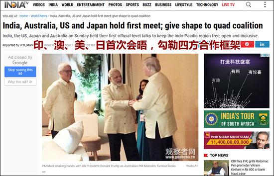 为深化安全合作,协调地区基础设施融资方案,美国、日本、印度和澳大利亚2017年11月已重启了四方会谈。