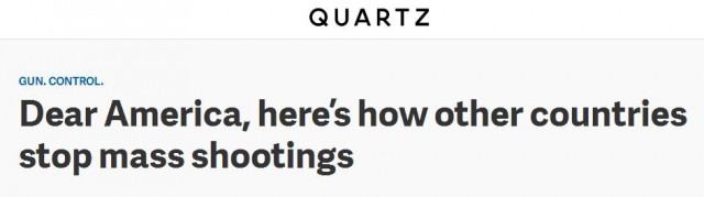 在这篇题为“亲爱的美国,这是其他国家怎样阻止大规模枪击案的”的文章中,Quartz这样写道:“白宫的特邀嘉宾们(对减少枪击案)提出了许多需要解决的问题:精神疾病、校园欺凌、FBI的疏忽、无枪区、审查制度、党派偏见、缺乏专家顾问、对学生安全培训不到位,甚至是学校里没有带枪的便衣警察…但正如一名18岁的幸存者扎伊夫提出的,一个众所周知的想法已经被证明能够阻止大规模枪击案的发生,那就是更严格的枪支法。”