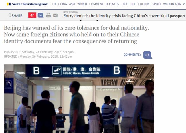 香港《南华早报》称,如今中国有关机构正严查双重国籍的灰色地带,分析人士称,此举与追查贪官非法所得的专项行动不无关系。