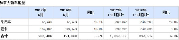 去年加拿大汽车销量首次创204万辆纪录,比前年增长4.6%