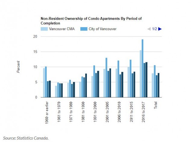 非居民房主在多伦多和温哥华的地产市场相对来讲是少数,也就是所谓的外国买家。加拿大统计局的数字显示,多温两市地产市场的外国买家比例远远不到两位数,与人们以为的情况大相径庭。