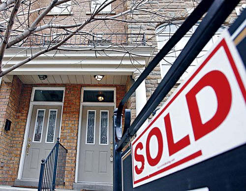 A sold sign is displayed in front of a house in Toronto in this December 15, 2009 file photo. Experts ranging from Fitch Ratings and Morningstar to the International Monetary Fund and economist Paul Krugman have warned about the risks of the housing boom in Canada, where the average home price has doubled in 11 years. REUTERS/Mike Cassese/Files (CANADA - Tags: REAL ESTATE BUSINESS POLITICS)[/caption]