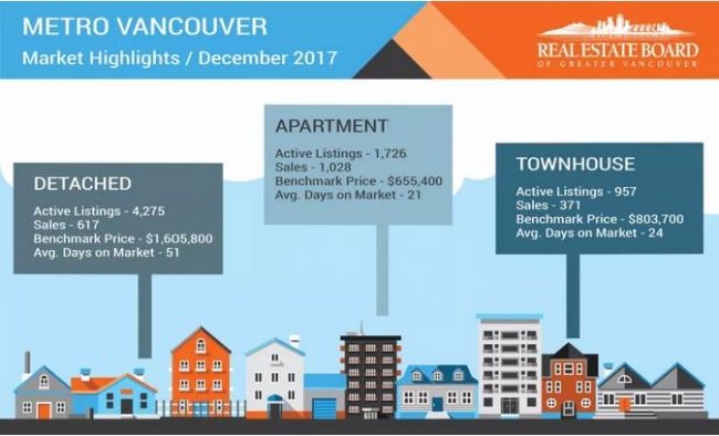 本周三,大温地产局公布了2017年12月的销售数据,也对2017年全年的销售情况进行了回顾。总体来说,2017年大温地区共管公寓的基准指标价年涨幅为25.9%;城市屋的基准指标价年涨幅为18.5%;独立屋的基准指标价年涨幅为7.9%。