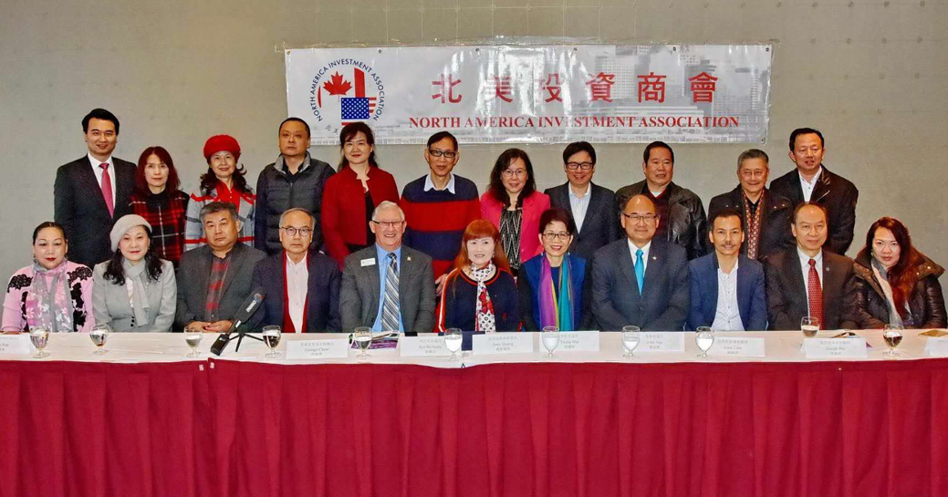 (本报讯)北美投資商會1月8日举行新闻发布会,宣布今年6月將組團參加香港首屆一帶一路國際食品展。BC省贸易省务厅长周炯华、省议员屈洁冰、叶志明、列治文市议员麦乐田(Bill McNulty),以及很多商会会长、有兴趣的相关行业企业的代表50多人前来参加新闻发布会。