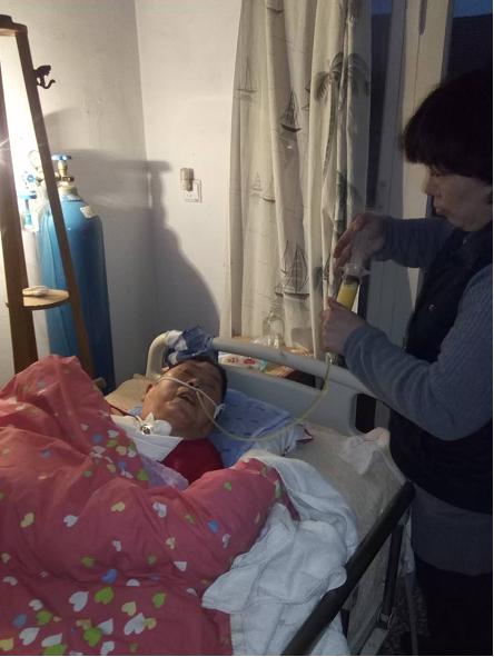 年届八旬的村民王老太太,因病处于植物人状态已8年之久,现在插着胃管、氧气管、气管还切开着,四个女儿把工作都辞掉在家轮流伺候,吸痰、吸氧、打流食一刻都不能断水、断电,村主任李发友为了强制拆迁、停电停水,老人随时面临着死亡的威胁!12月26日晚上,老人居住房屋的南屋也被点着。