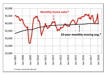 根据加拿大房地产协会CREA(Canadian Real Estate Association)今天发布的月报,2018年1月份通过重售系统(MLS)销售的房屋比去年12月份下降14.5%,也是三年来销量最低的一个月。