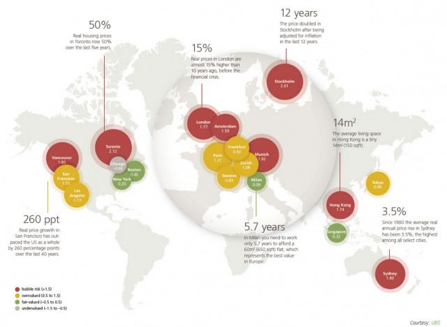 VC的这份报告利用了世界著名银行瑞银(UBS)的大量数据进行分析,得出结论说,全球房地产泡沫风险最大的8个城市分别为多伦多、斯德哥尔摩、慕尼黑、悉尼、伦敦、香港,温哥华和阿姆斯特丹。