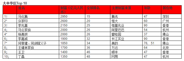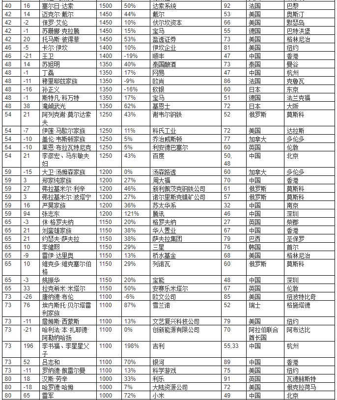来源:《2018胡润全球富豪榜》↑对比去年排名上升↓对比去年排名下降–对比去年排名不变*对比去年新进前十