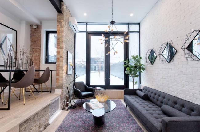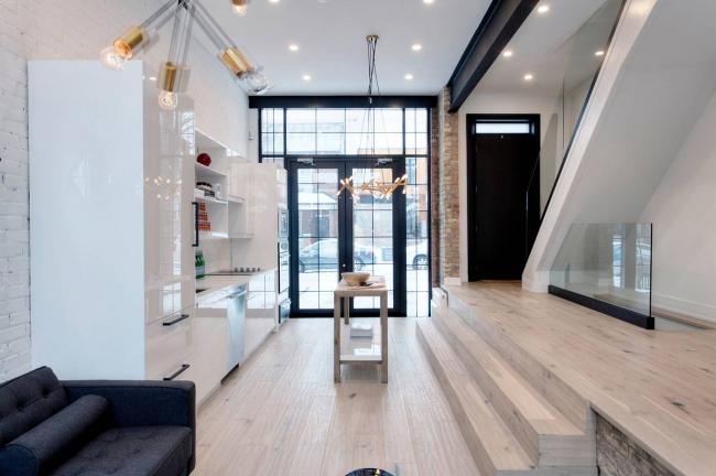 就在上月底,多伦多著名豪宅区玫瑰谷(Rosedale)东北面Bayview与Mt Pleasant地区一幢新屋叫价$500万,最后还真是不多不少以$500万售出,毛利润就赚了足足$300万! 但平心而论,这幢宅子的装修确实可圈可点,何况还是把旧屋完全推倒之后重建,尽管从外面看不怎么起眼,但内部装修确实得体,而且相当漂亮,不信您看看:都是装修立大功!这栋独立屋多卖了$300万 但以下这栋宅子就不一样了:论历史那真是有年头了,始建于1860年,具有158年的“悠久历史”。要说业主和装修商也很精明,打的就是有历史的旗号,卖的也是历史。从下面就可以看到,装修过程中,还专门将“历史悠久”的红色砖墙露出来,让买家为历史而动容,然后再动心。 要说区位,这栋宅子位于多伦多市中心的53 Palmerston Ave,也就是Queen St West与Bathurst St地区,确实是好区!要不为啥公交交通分(Transit Score)打了100分,步行便利分(Walk Score)也打了92分? 也正因为区位好,因此地盘不算很大,前后院子都比较紧凑,也许不是喜欢栽花弄草人士之所爱。 再说房型,理论上是独立屋,但看起来并不怎么独立:与右舍倒是有个不宽不窄的空隙,但与左邻那就是紧紧相连,“难分难舍”的样子,故你说独立屋吧也成,半独立吧也中,或者叫非独立的独立屋?也许更贴切。 但这栋宅子的价值不在外,而在内。显而易见,业主和装修商在整个装与修的过程中绞尽了脑汁。 为了让这栋原本不宽敞的宅子变得宽敞,主层被修成了有起伏的两层,因此视觉上增加了空间,感觉房子宽大、敞亮多了: