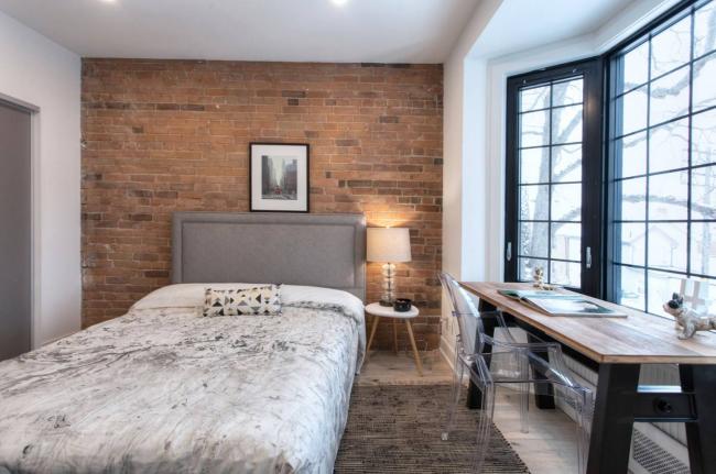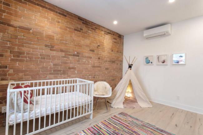 前面提到过,为了凸显宅子的“悠久历史”,业主和装修商故意露出了“古色古香”的砖墙,这在另一间卧室以及婴儿间均可看到: