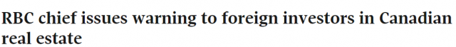 加拿大皇家银行(RBC)行政总裁表示,外资的流入,扭曲了加拿大业已受限的房地产市场,外资已经不是本国需要的投资。