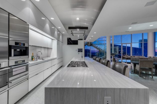 但它位于寸土寸金的温哥华。设有四间卧室和四间全套浴室,以及健身房和带热水浴缸的泳池等设施。但最吸引人的还是它的景观:能够俯瞰温哥华,并且看到周边的雪山。