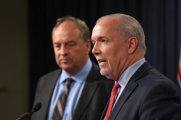 BC省绿党领袖韦弗(左)和省长霍根(CP/Chad Hipolito)