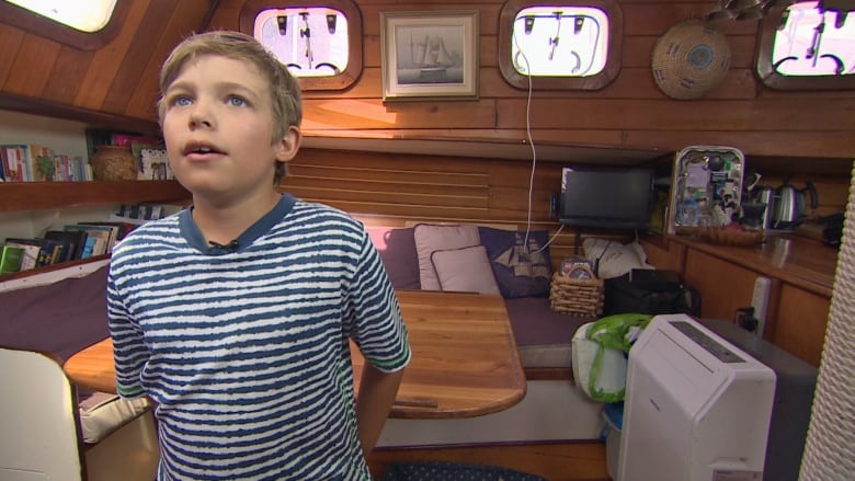 奴塔尔-斯罗恩夫妇的儿子?Strummer /?(James Morrison/CBC) 奴塔尔-斯罗恩夫妇补充说,生活在船上,我们生活变得非常简化,没有过多的积累物品。 而且,对我们来说,我们的儿子通过在船上生活所获得的体验和能力,远比生活在公寓里要多得多,这让我们感到很高兴和满足。 (据RCI)