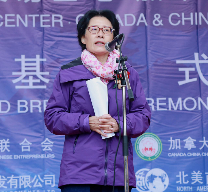 黄陈小萍国会议员致辞时表示,加中贸易城是一个非常大的项目。在加拿大,5个人的工作岗位就有1个是贸易创造出来的,所以祝贺素里能够得到这么大的一个项目。这个项目是素里的第一个,也是BC省的第一个,所以今天不仅仅是动工,也预示中加贸易有一个好的基础。