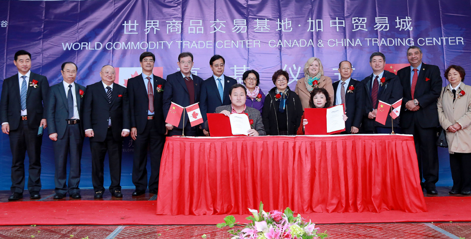 奠基仪式上,中海商谷与北美商谷全球购(签约人:吴虹仪与吴成海)、北美商谷与加拿大华商联合会(签约人:吴虹仪与林金龙)、北美商谷与加拿大北方药业集团(签约人:周紫雲与庞军)、北美商谷与温哥华深圳总商会(签约人:周紫雲与吴丛林)四个项目顺利签约。