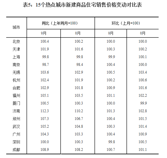 数据显示,9月份有3个城市房价出现了环比下调,分别是深圳、金华、上海,另外还有泉州、厦门、北京出现环比持平。