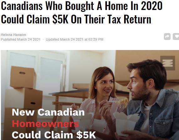 如果你在2020年购买了合资格的房屋,可以在税表上申报$5000元“购房者金额”(home buyers' amount),条件是在过去四年,即2016年至2020年购买前,你没有居住在你和配偶或同居伴侣拥有的另一个房屋。申请这一金额可以得到$750的不可退还的税收抵免(non–refundable tax credit)。